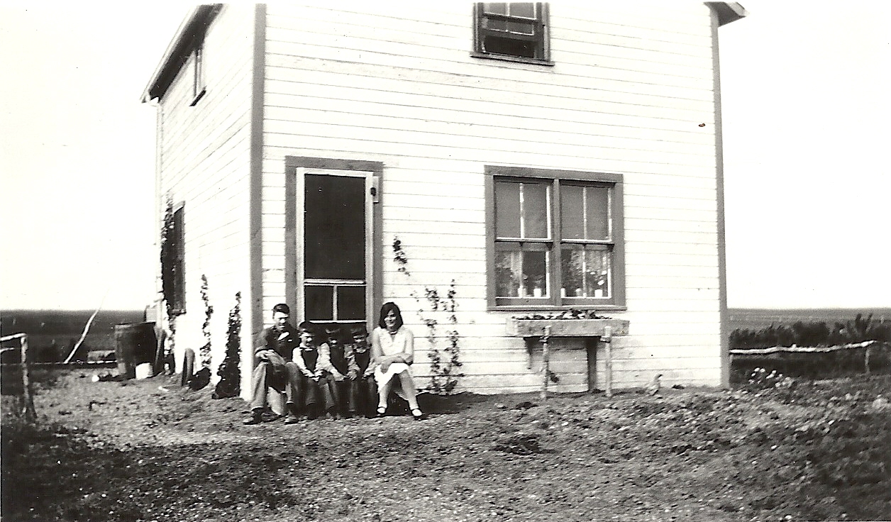Left to right in the photo could be: John (Jack) born about 1916, Gilbert, born 1924; twins – J. Gordon and Kenneth W. born 1 May 1925; and Janet Watson, born about 1914. The location is probably the ‘Johnny Thompson Farm’; surrounding countryside bleak. Photo taken about 1930?