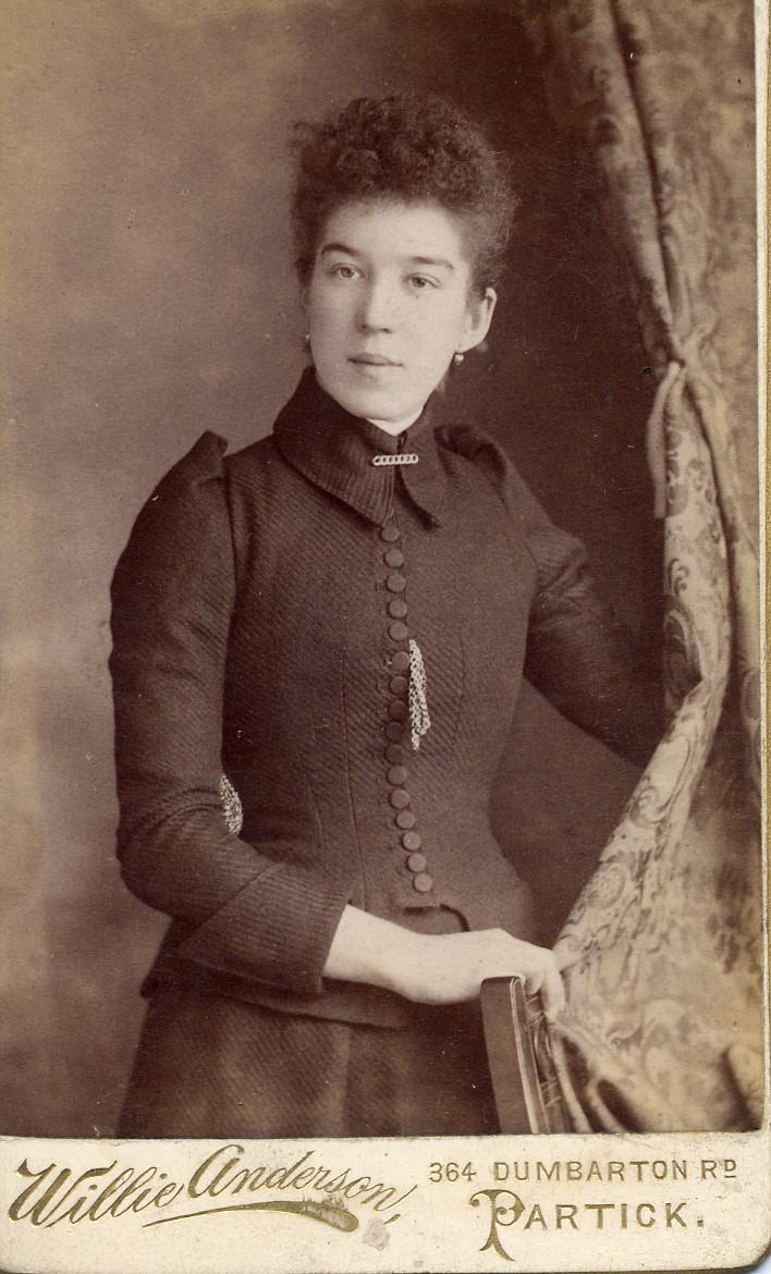 Photo below: Unknown-0004 and Unknown-0004a (front and back of photo); carte de visite format. William Grant was the photographer, the name ‘KUNGU..’ might mean Kingussie, Fife? However, no family have yet been discovered in Fife from this period. Also, the kilt is confusing. Research to date indicates that this is not a military uniform, only suggestion so far is that this couple have dressed in their finery for a special event. The kilt is also confusing as most of the Watson / Muir family were from the lowlands of Scotland; an area where kilts were not normally worn.