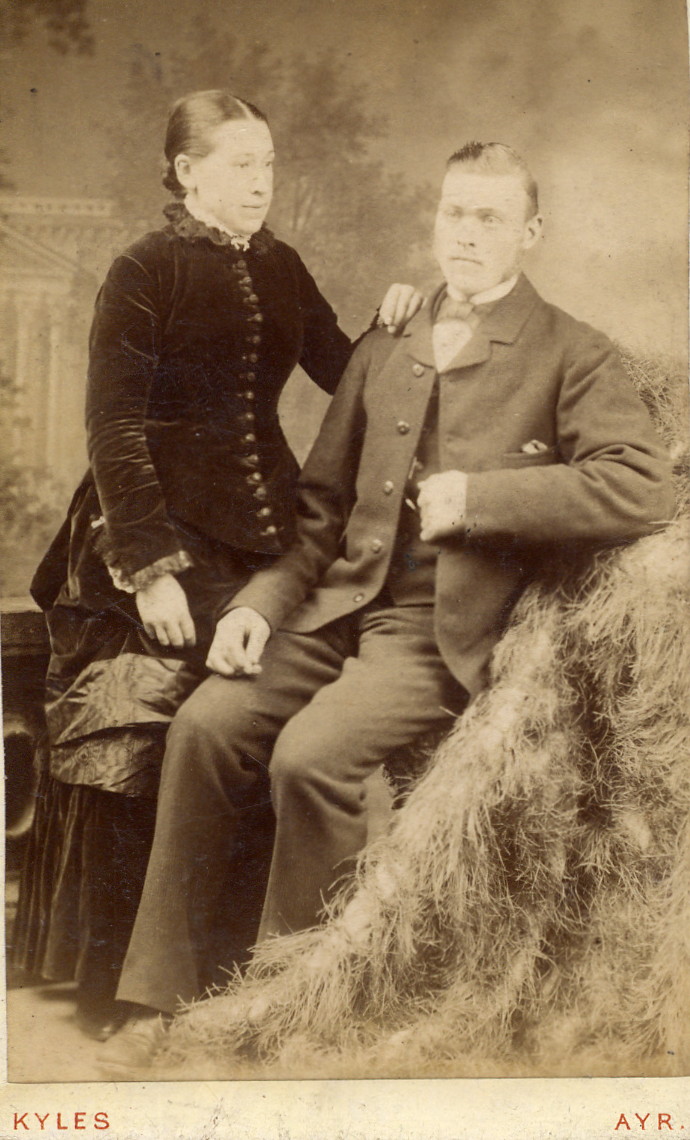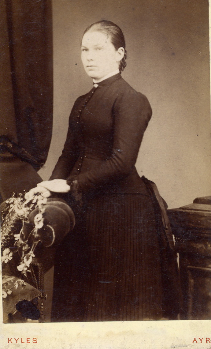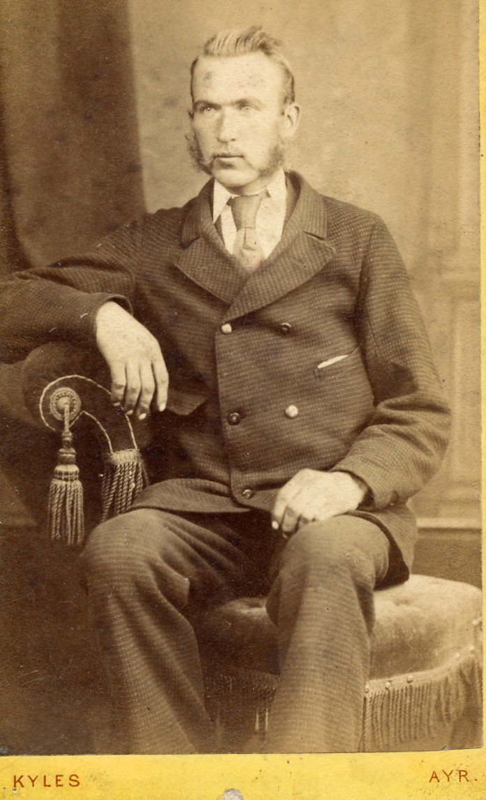 Photo right: Unknown-0003; carte de visite format. No design on the reverse of the photo. I have always wondered if this is Thomas WATSON 1827-1878? The 1871 census tells us that Thomas Watson and his family were on Mount Oliphant Farm near Ayr Scotland and that Thomas was a ‘farmer of 70 arable acres’. Perhaps he fancied himself as a ‘gentleman farmer’?